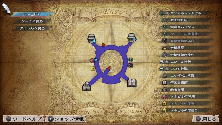 街の主要施設にファストトラベル、倍速機能、装備品リストなど快適機能が実装されている。