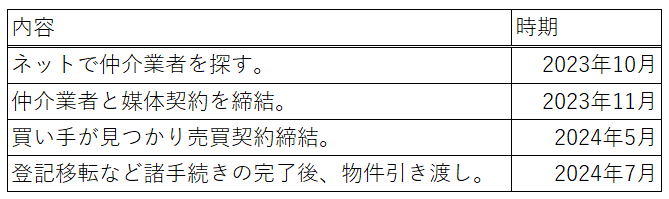 仲介業者を探し始めてから引き渡しまで9ヶ月かかっていることになる。