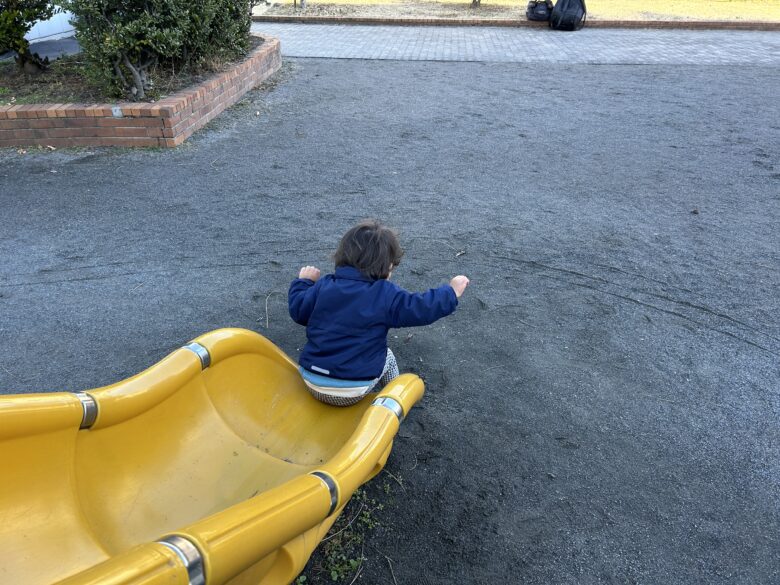 初めて行く公園、初めて見る遊具に興味深々。