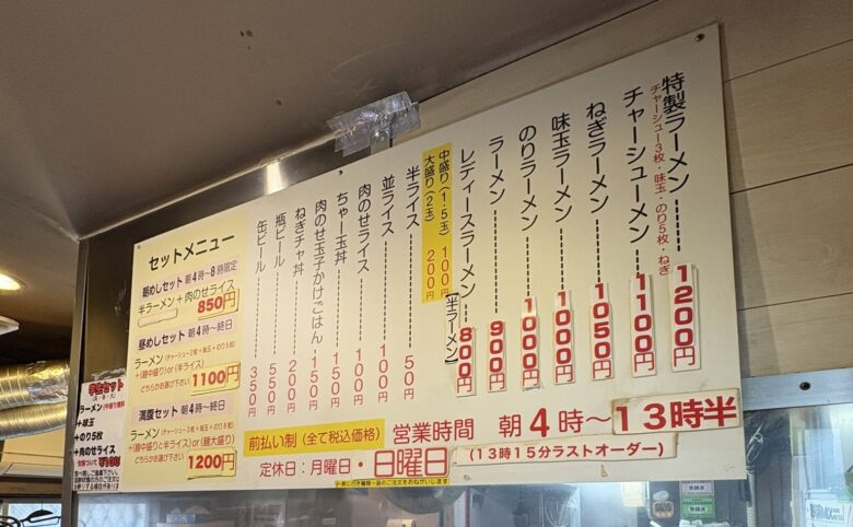 営業時間 4:00〜13:30(ラストオーダー13:15)