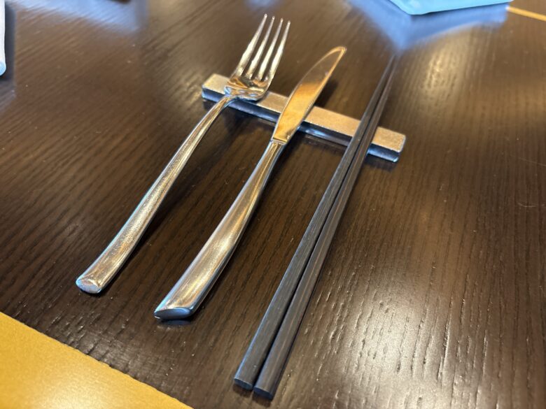 子ども向けのプラスチック製カトラリーが用意されていたが、お子様向けメニューは少ない。