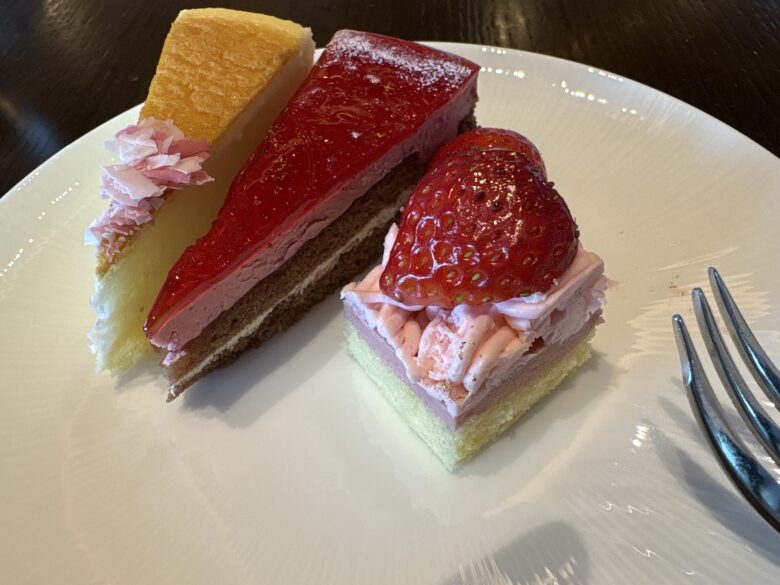 今日の初手は、スフレチーズケーキ、ラズベリーノワゼット、苺のモンブラン。