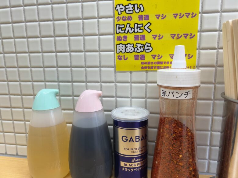 元々あったブラックペッパー、赤パンチ(とうがらし)に加えてお酢とカエシが用意された。