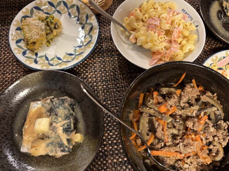 長男が特に気に入ったのはマカロニサラダで、何度もおかわりしていた。