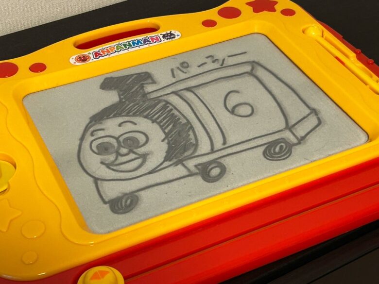 顔のついた機関車がお気に入りでテーマソングをカタコトで一生懸命歌おうとする。